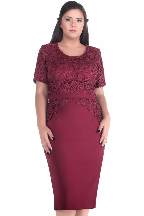 Rochie eleganta din dantela macrame bordo. este o rochie eleganta cu o croiala cambrata ce imbraca frumos formele corpului. Este o rochie eleganta potrivita pentru evenimentele importante.