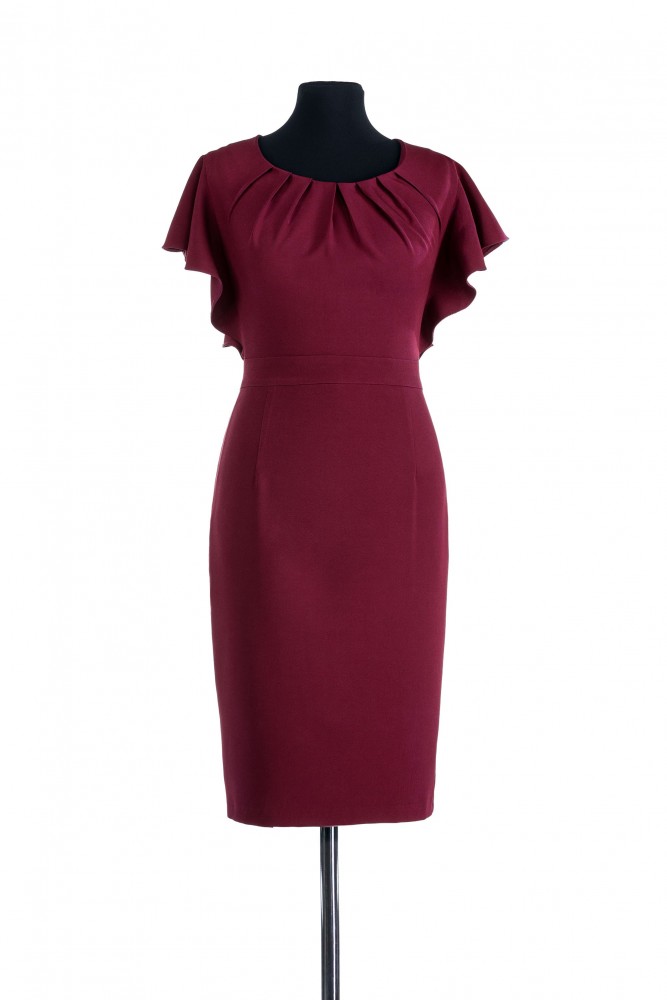 Rochie bordo cu o croiala conica. Este confectionata din material usor elastic ce se cambreaza discret pe corp.