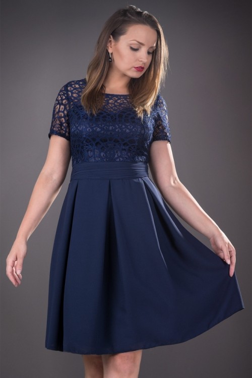 Rochie eleganta cu fusta in clos. Este confectionata din dantela si voal. Rochie eleganta de vara cu maneca scurta.