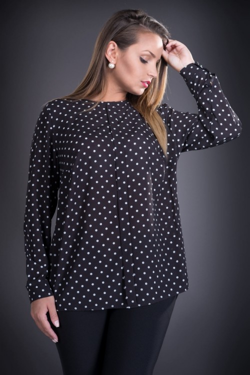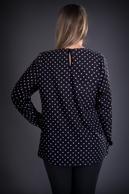 Bluza eleganta cu maneca lunga confectionata din voal negru cu buline albe.