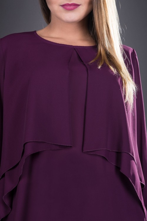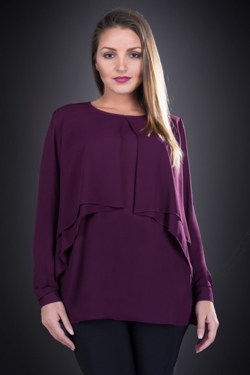 Bluza eleganta de dama cu maneca lunga. Bluza este confectionata din voal mov inchis si se inchide la spate cu un nasture.