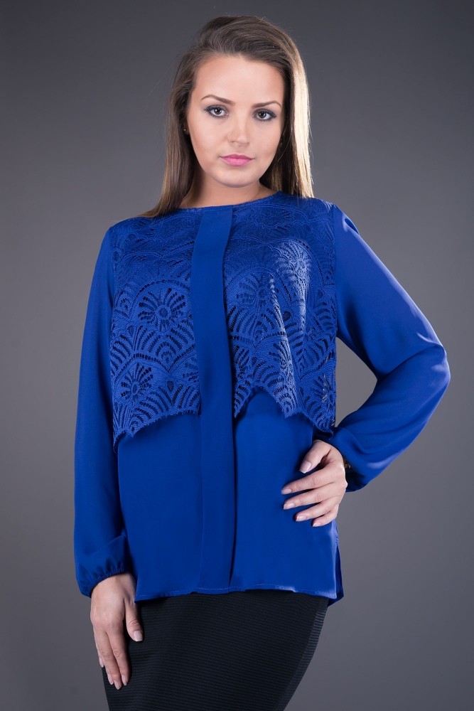 Bluza de dama eleganta cu aplicatii din dantela. Bluza este confectionata din voal si are aplicatii din dantela in fata si spate.