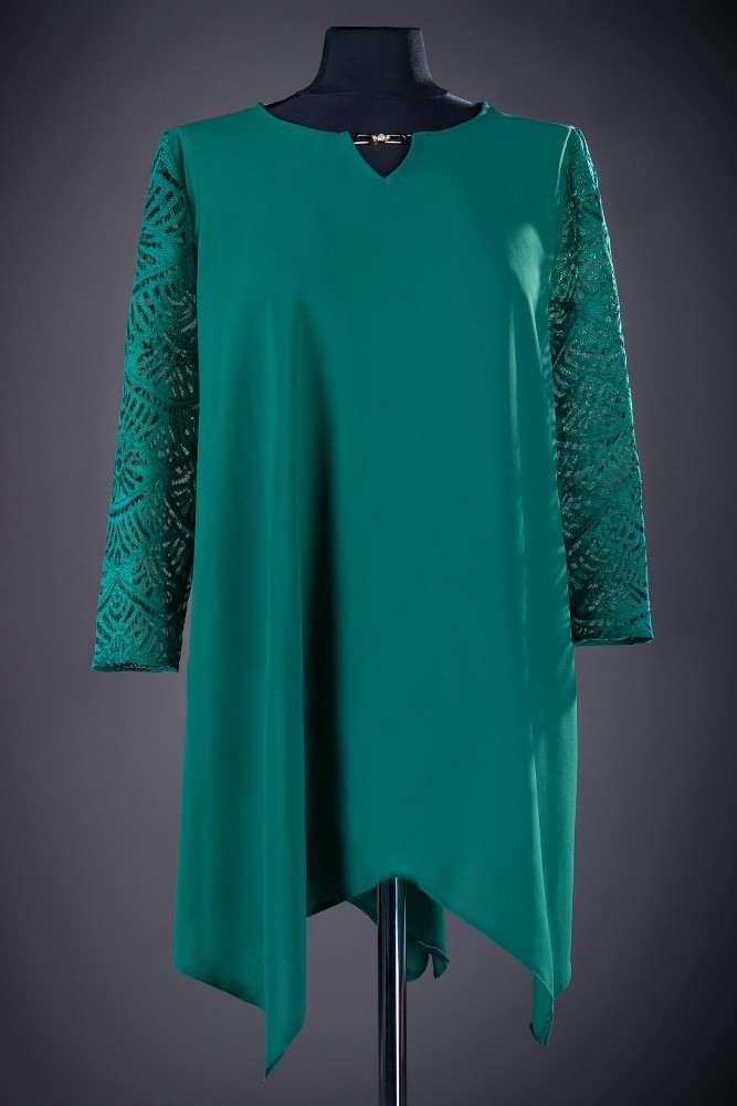 Bluza eleganta verde, cu maneci trei sferturi, confectionate din dantela. Acest gen de bluza poate fi purtat atat la un eveniment deosebit, cat si casual.