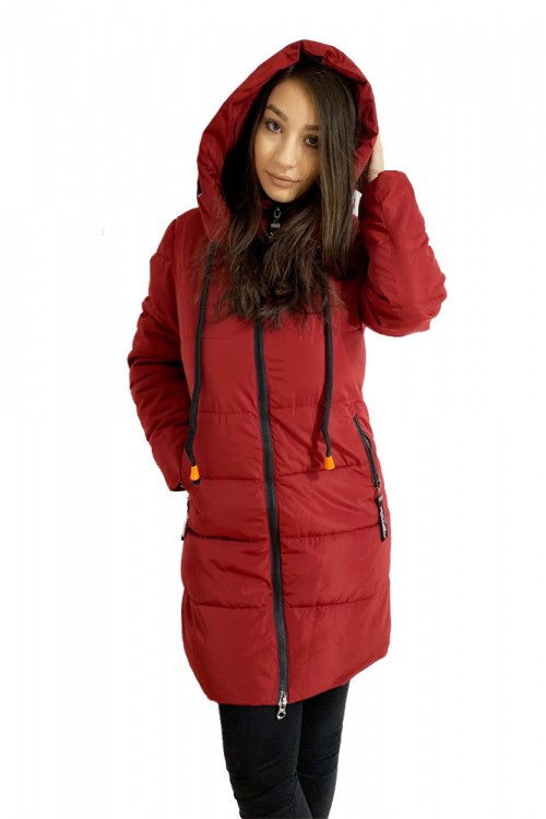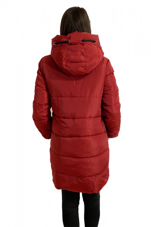 Geaca dama bordo din fas cu gluga. O geaca cu un croi lejer perfecta pentru zilele friguroase de iarna.