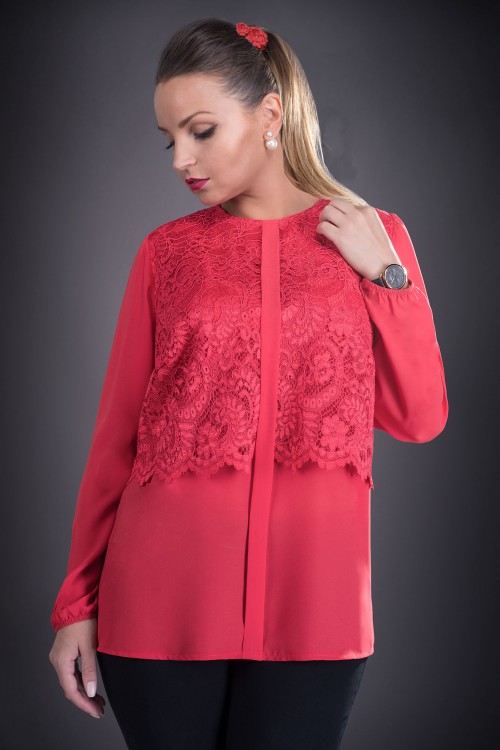 Bluza dama eleganta din voal cu aplicatii din dantela.