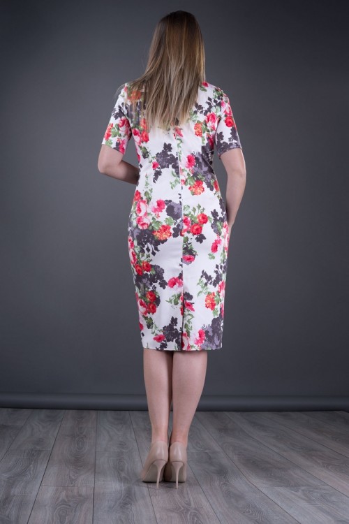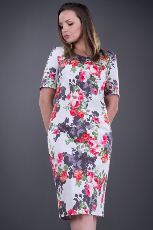 Rochie de zi cu imprimeu floral confectionata din bumbac. Este o rochie cu o croiala usor cambrata. Rochia este croita pentru marimile 44,46,48,50.